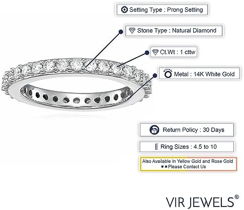 1/2 cttw to 1 cttw Diamond Wedding Anniversary Band for Women, Full Eternity Round Diamond Engagement Ring 14K Gold Prong Set, Size 4.5-10