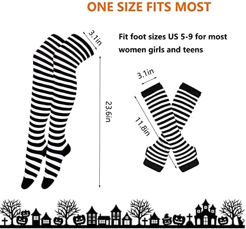 2/4 Sets Womens Striped Knee High Socks Long Knitted Arm Warmers Fingerless Gloves for Halloween Costume