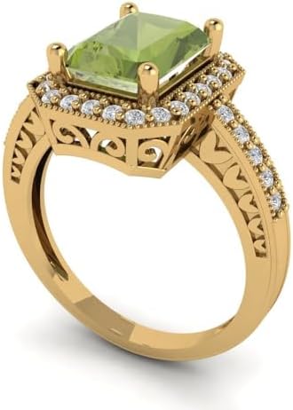 2.78 tcw Emerald Cut Cocktail Ring for Women in 14K Yellow Gold, Natural Peridot Birthstone w/Halo Accents Solid Gold Womens Statement Fashion Ring (Size Adjustable)