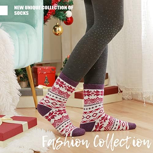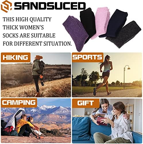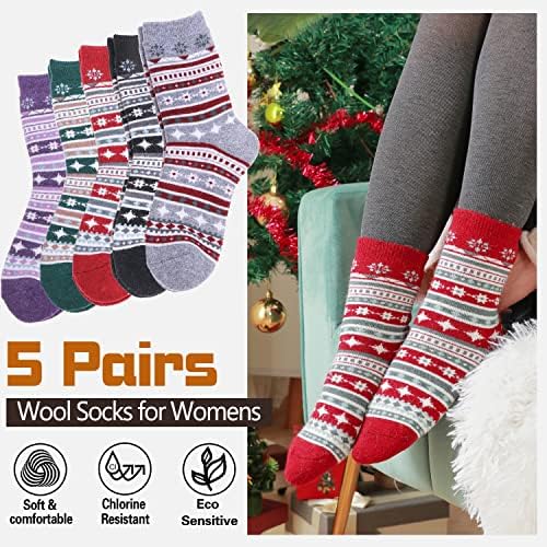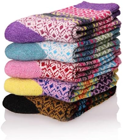 5 Pack Merino Wool Hiking Socks for Women Warm Winter Thick Thermal Cozy Boot Work Soft Ladies Socks