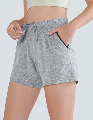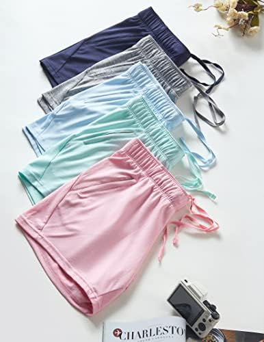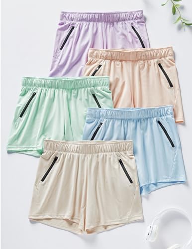 5 Pack: Womens Workout Gym Shorts Casual Lounge Set, Ladies Active Athletic Apparel with Zipper Pockets