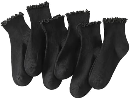 6 Pairs of Ruffle Socks Women, Ruffle Turn-Cuff Casual Cute Girl Ruffle Socks Breathable Cool Ruffle Ankle Socks