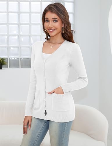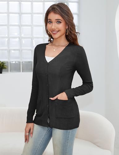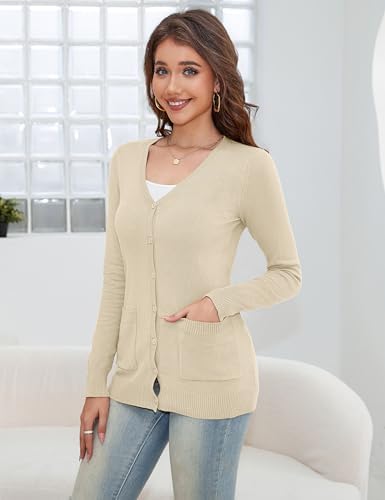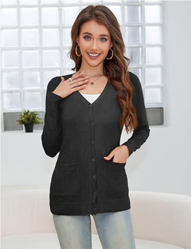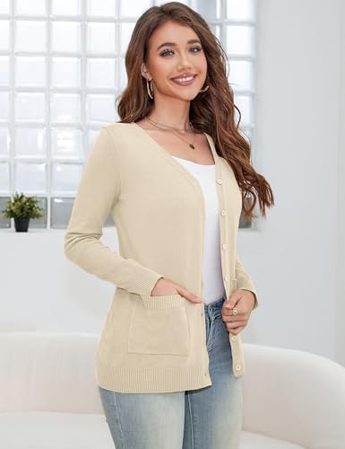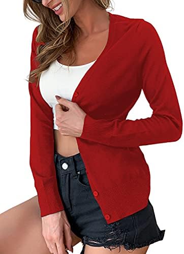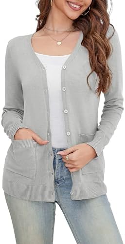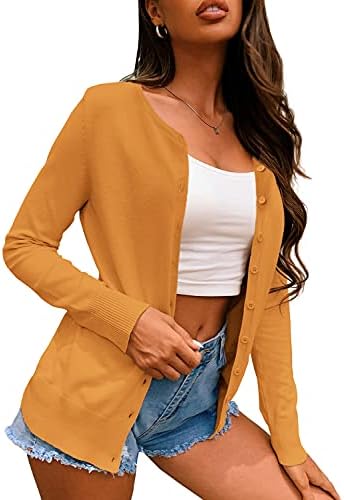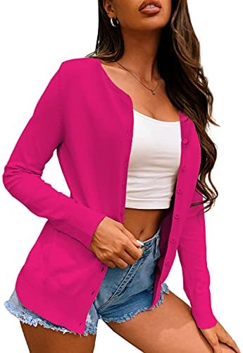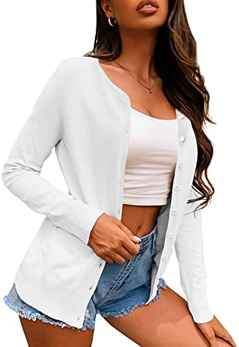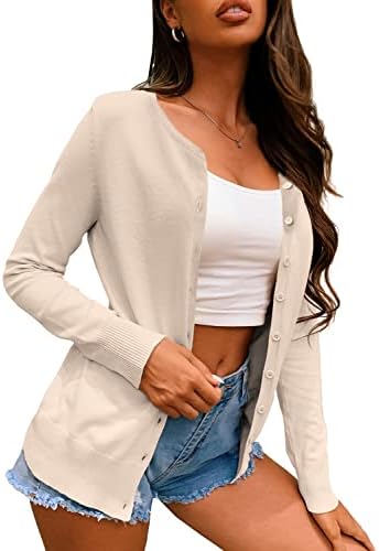 a.Jesdani Women's Button Down Crew Neck Long Sleeve Soft Knit Cardigan Sweaters