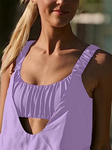 Mansy Womens 2024 Summer Floral Mini Dress Boho Flowy Skater Dresses Short Sleeveless Ruffle Spaghetti Strap Dress