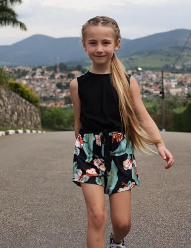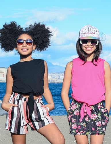 Arshiner Girl's 2 Piece Outfits Tie Knot Tank Top and Paperbag Waist Pocketed Summer Short Sets