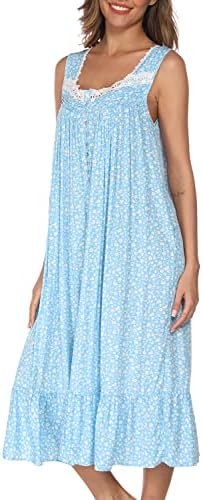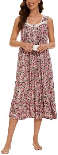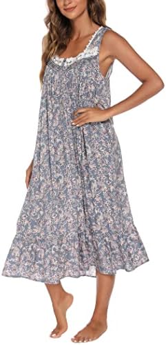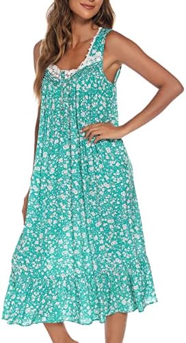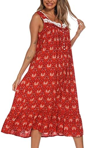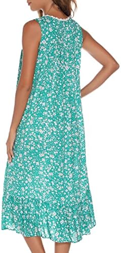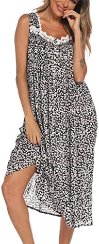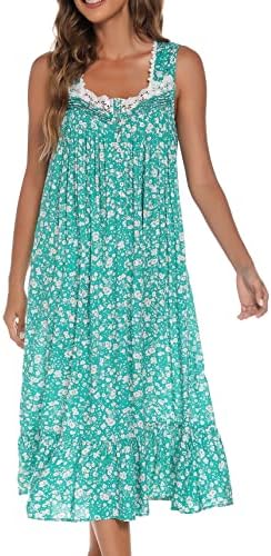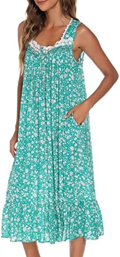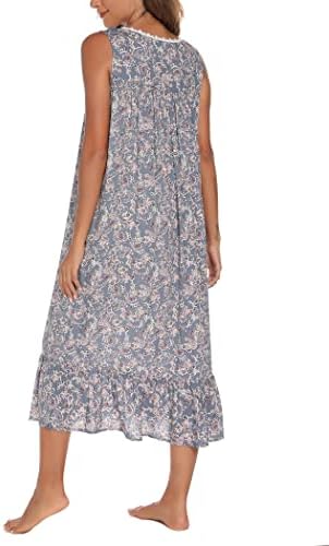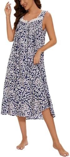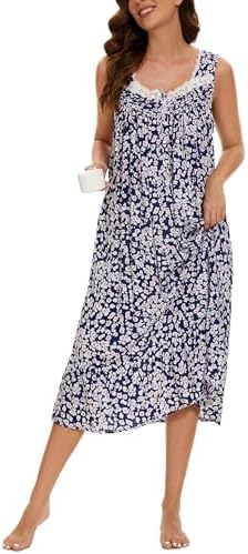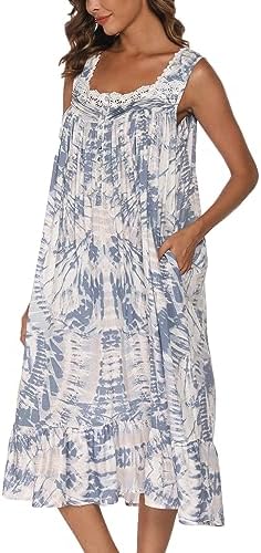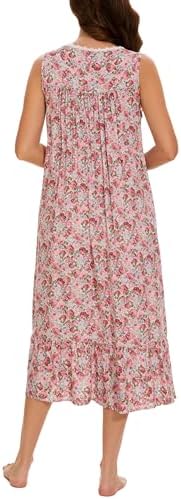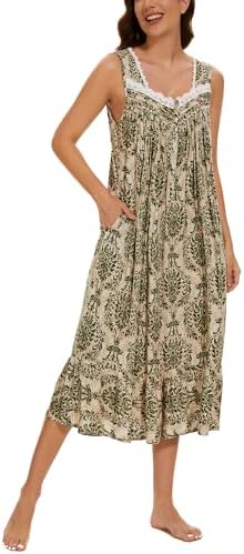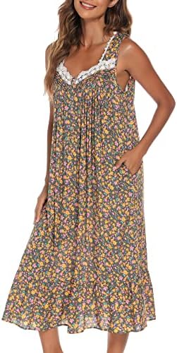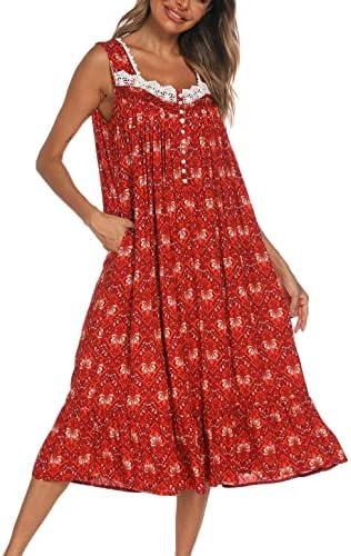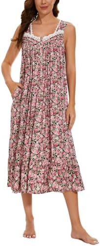 AVIIER Cotton Nightgowns for Women Sleeveless House Dress Ladies Long Nightdress with Pockets S-XXL