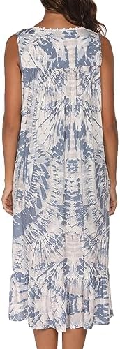 Summer Dresses for Women Beach Boho Sleeveless Vintage Floral Flowy Pocket Tshirt Tank Sundresses