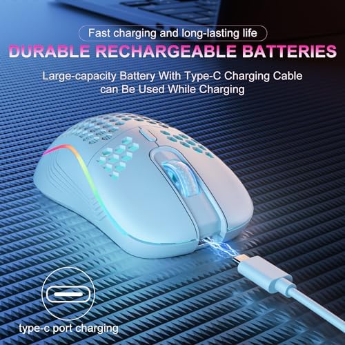 AVMTOM Wireless Mouse wireless gaming mouse Rechargeable PC Mouse with RGB Backlit 6 Buttons Adjustable Ergonomic for Laptop, PC, Computer, Desktop, Notebook etc Gaming Mouse Wireless (White)