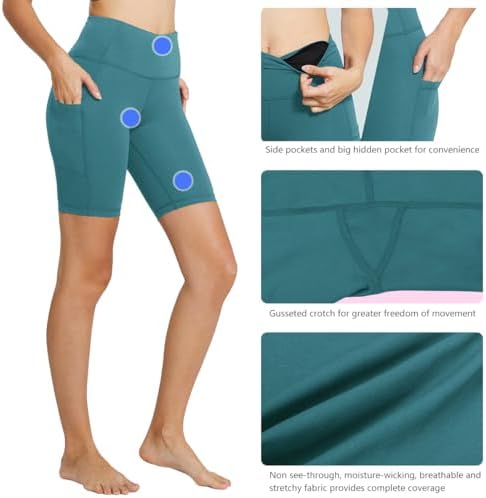 BALEAF Women's 8"/ 5"/ 3" Biker Shorts High Waist Yoga Workout Gym Running Volleyball Spandex Shorts with Pockets