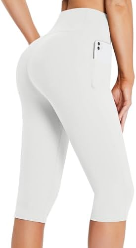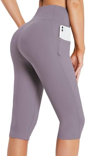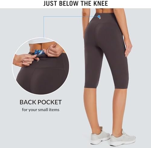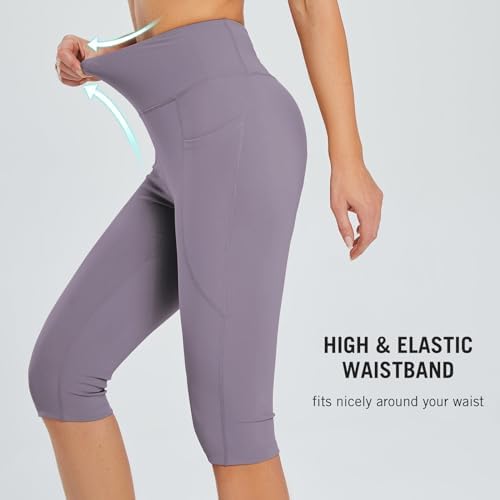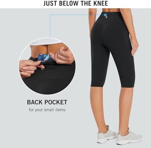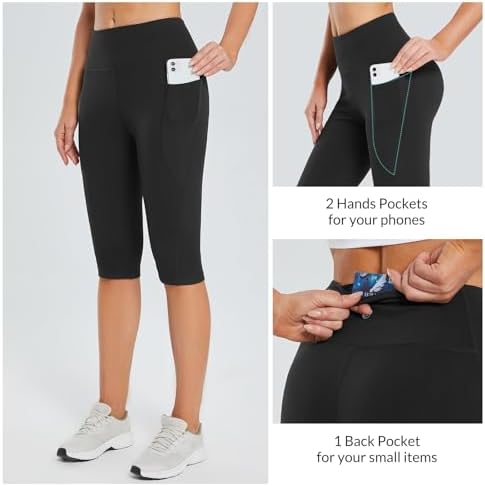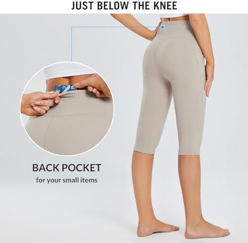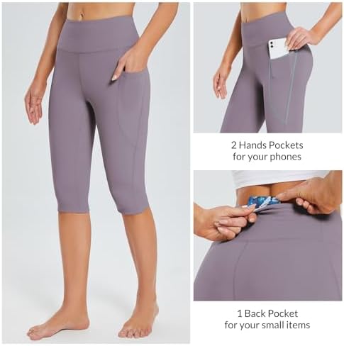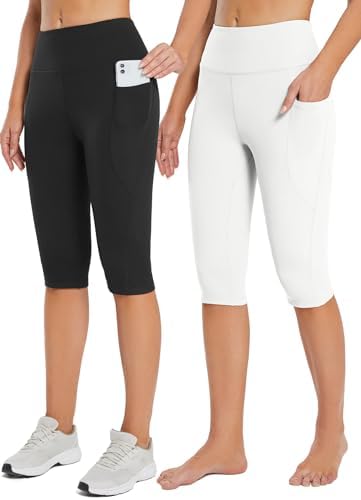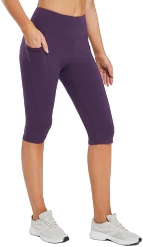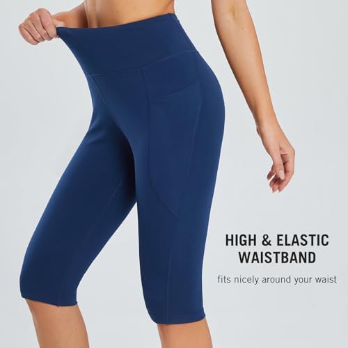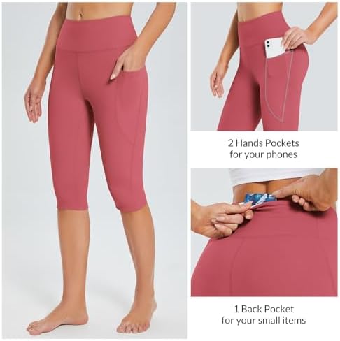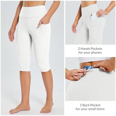 BALEAF Women's Capris with Pockets Knee Length Capri Leggings High Waisted Stretch for Casual Summer Yoga Workout Exercise