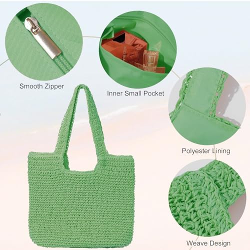 Beach Bags for Women - Summer Soft Large Woven Shoulder Purse Handbag, Beach Tote Straw Bag for Summer Vacation