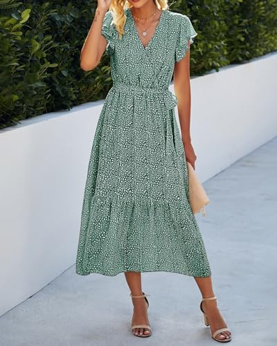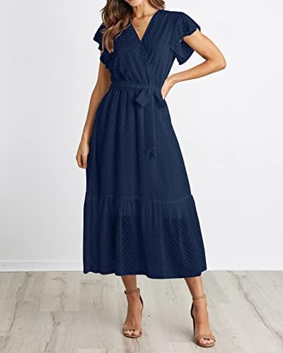 BTFBM Women's Summer Casual Wrap V Neck Beach Party Flowy Ruffle Midi Dress