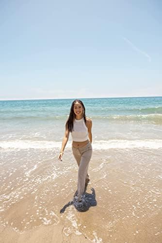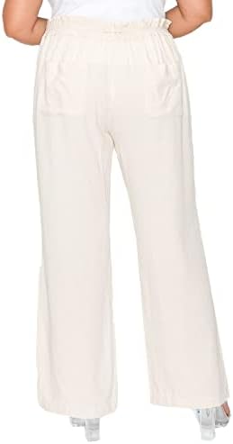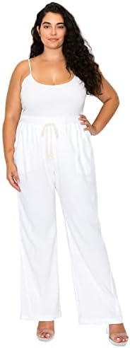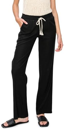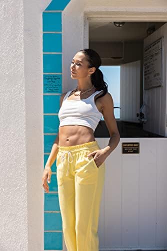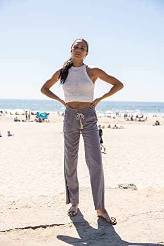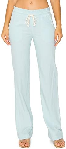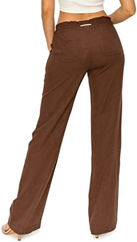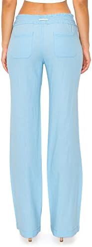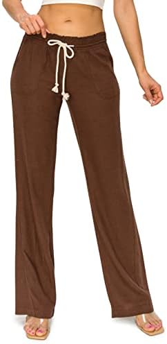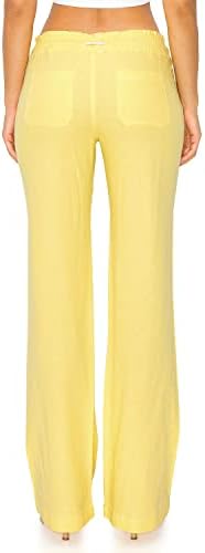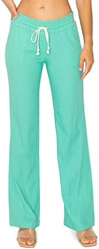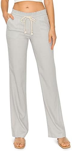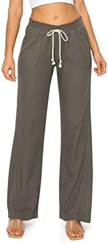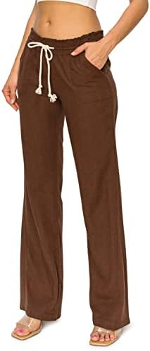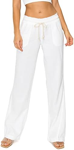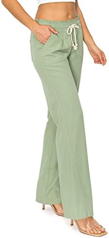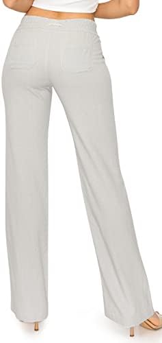 Cali1850 Women's Casual Linen Pants - 32" Inseam Oceanside Drawstring Smocked Waist Lounge Beach Trousers with Pockets