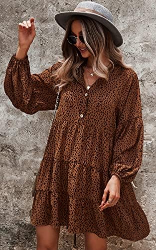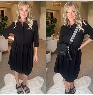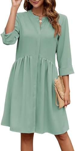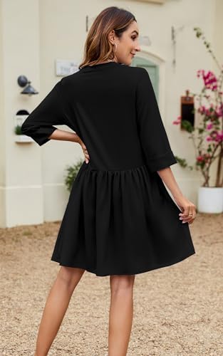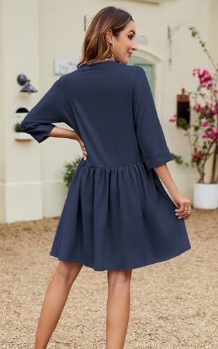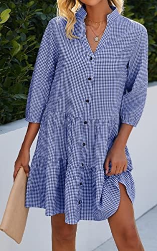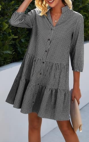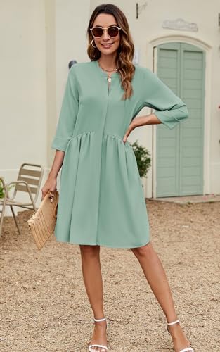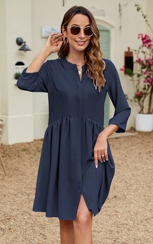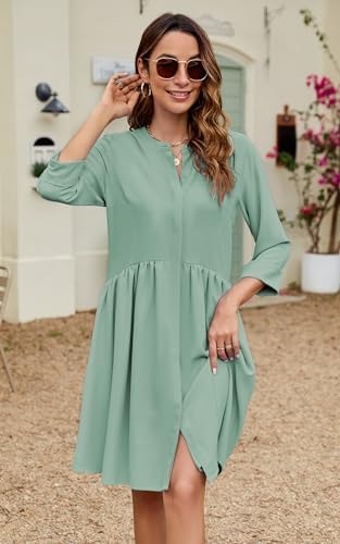 Women's Casual 2024 Summer Fall Winter Dress with Button Up V Neck 3/4 Sleeves