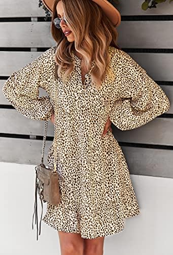 QACOHU Summer Dresses for Women V Neck Ruffle Short Sleeve Casual Shift Dress