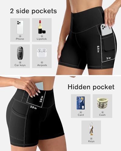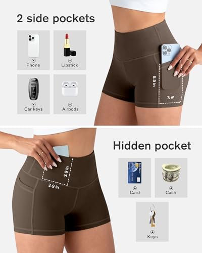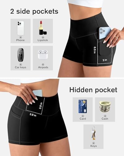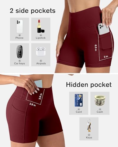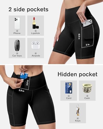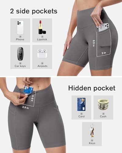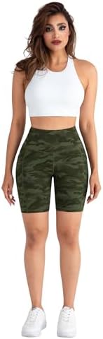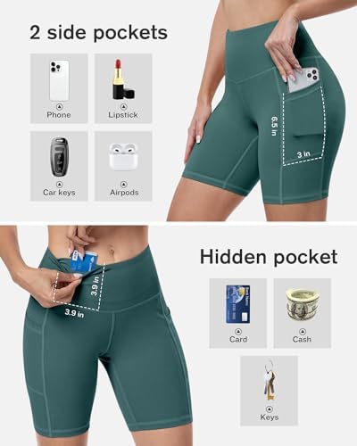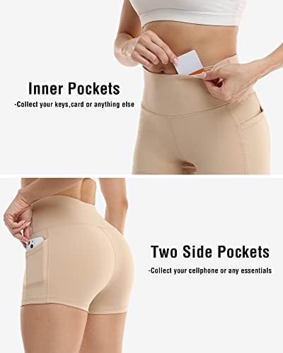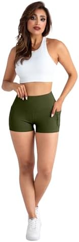 CHRLEISURE Spandex Yoga Biker Shorts with Pockets for Women, 3'' / 5'' / 8'' Workout Booty Shorts