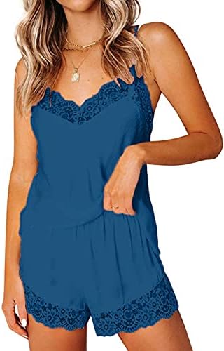 CHYRII Women's Sexy Silk Satin Pajamas Sets Lace Trim Cami Tops Shorts Sleepwear