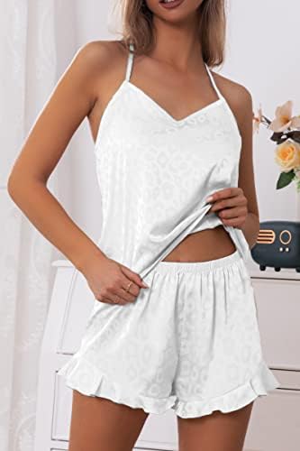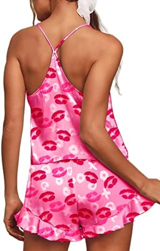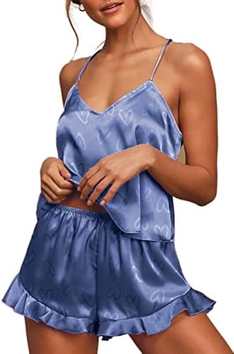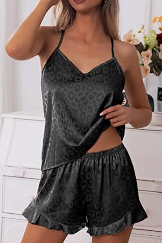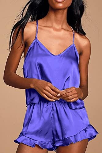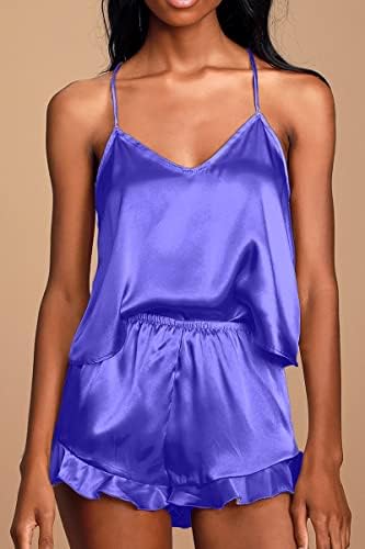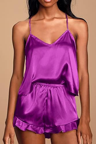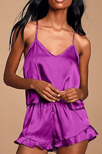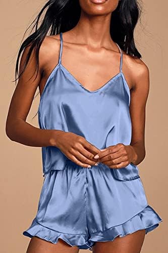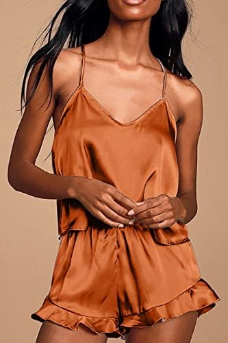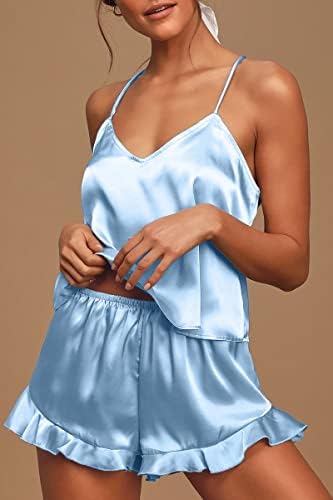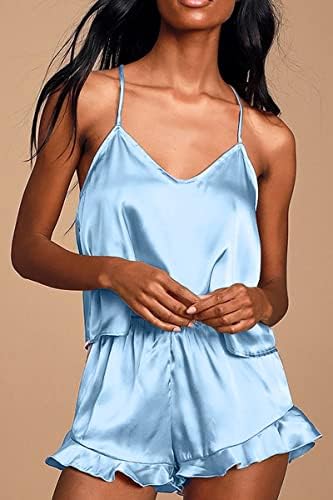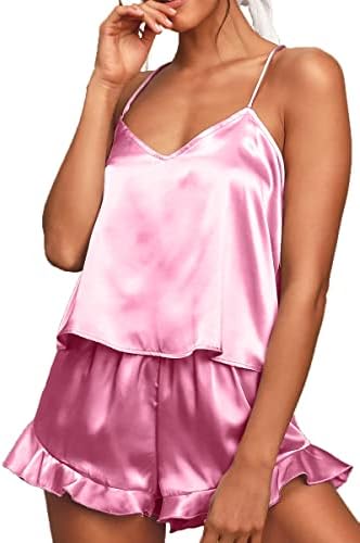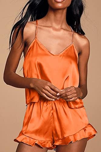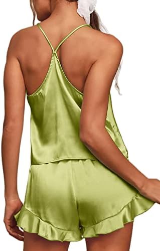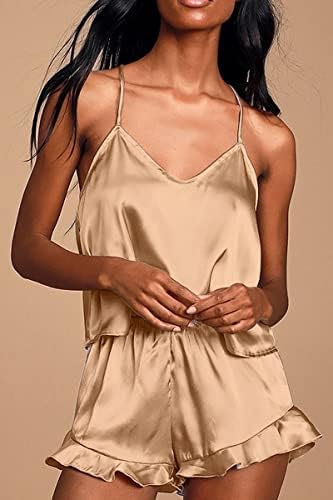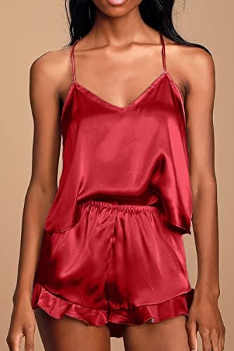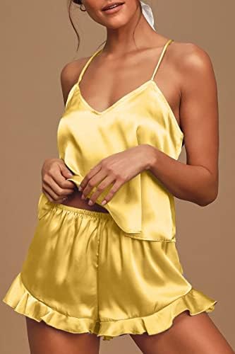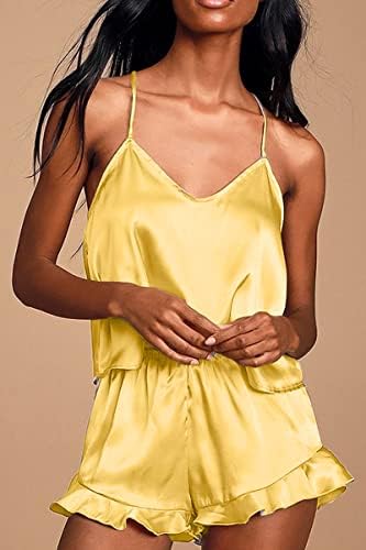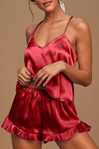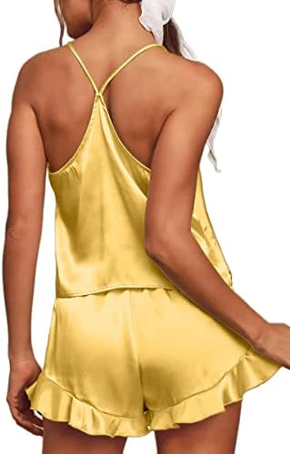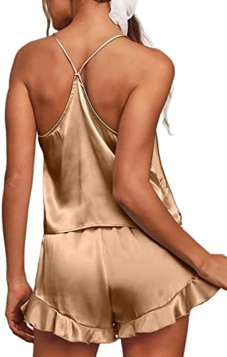 CHYRII Women's Sexy Silk Satin Ruffled Pajamas Sets Cami Shorts Sets Sleepwear