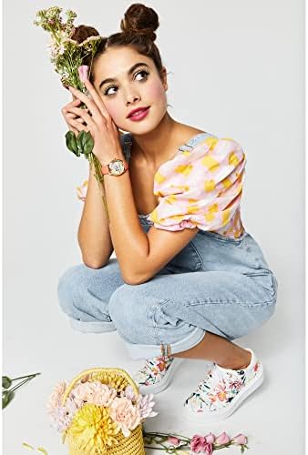 Citizen Eco-Drive Ladies' Disney Minnie Mouse Gardening Watch, Gold Tone with Coral Strap, Floral, 3-Hand Date, 36mm (Model: FE6087-04W)