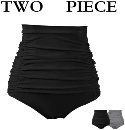 COCOPEAR Women's Ruched High Waisted Bikini Bottom Retro Vintage Swim Short Tankinis
