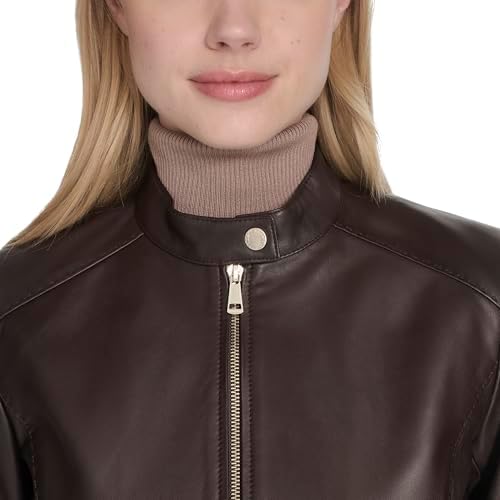 Cole Haan Women's Leather Hand Stitched Details Classic Jacket