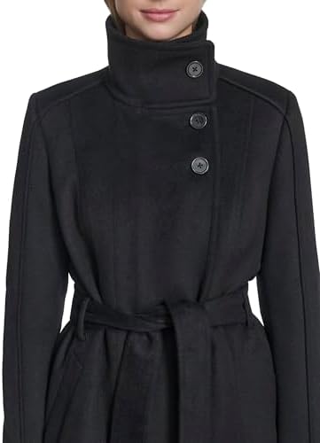 Cole Haan Women's Outerwear Asymmetric Belted Trench Coat with Stand Collar