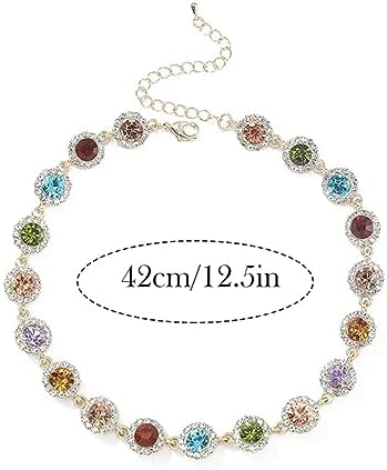 Colorful Crystal Choker Necklace Sparkly Rhinestone Chokers Necklaces Gold Chain Necklace Party Prom Neck Jewelry for Women