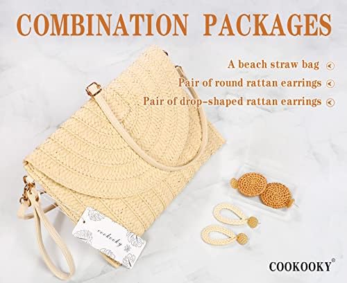 COOKOOKY Straw Clutch Handbag Summer Beach Straw Purse for Women woven Envelope Bag
