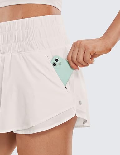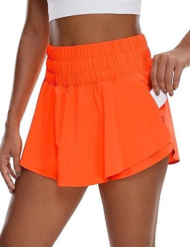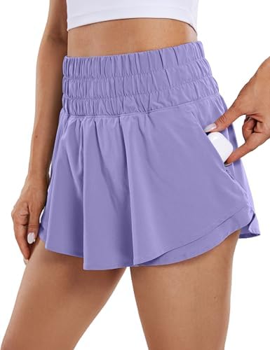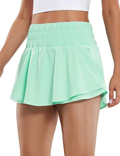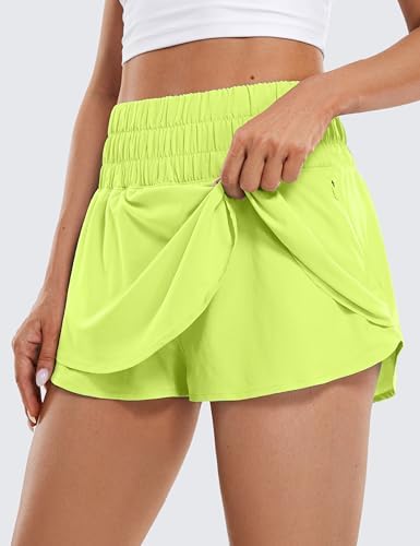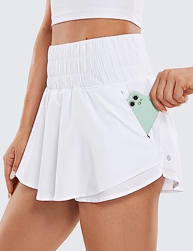 CRZ YOGA Athletic Shorts for Women High Waisted Flowy Ruffle Skirt Overlay Workout Running Tennis Shorts Zip Pocket