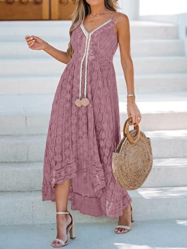 CUPSHE Women's Maxi Dress Lace Dresses Boho Tassel V-Neck Flare Ruffle Adjustable Straps Beach Summer Long Dress