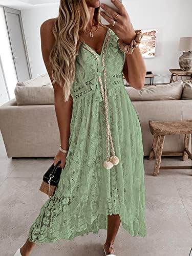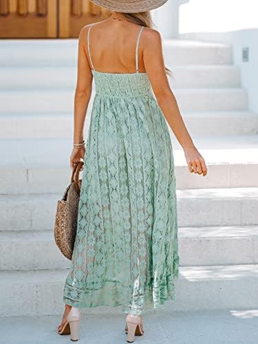 CUPSHE Women's Maxi Dress Lace Dresses Boho Tassel V-Neck Flare Ruffle Adjustable Straps Beach Summer Long Dress