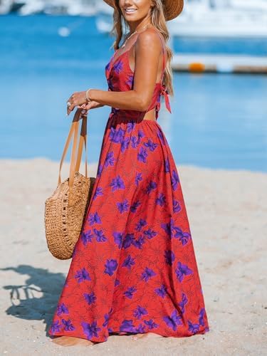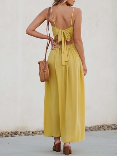 CUPSHE Women's Maxi Dress V Neck Twisted Sleeveless Cutout Self Tie Long Dress Summer Formal Dress