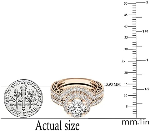 Dazzlingrock Collection Round White Cubic Zirconia CZ Halo Wedding Bridal Fashion 2 Piece Engagement Ring Set, Available in 10K/14K/18K Solid Gold