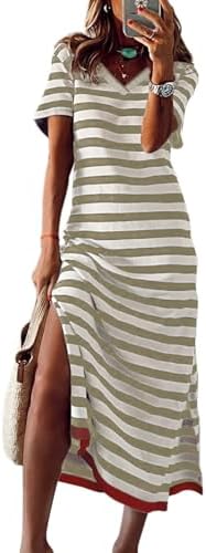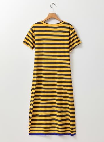 Dokotoo Summer Dress Casual Womens Fashion Short Sleeve Maxi Dress T Shirt Dress Striped Long Color Block Maxi Dress