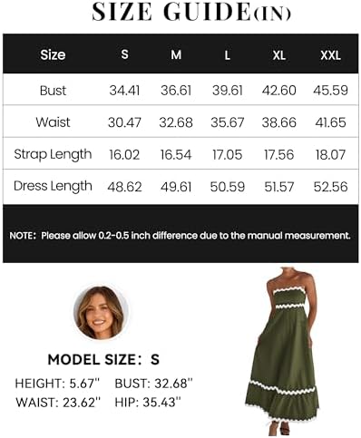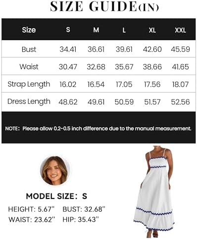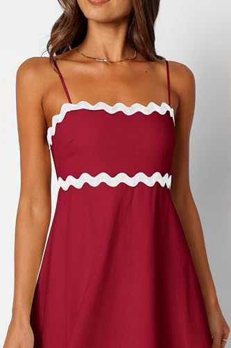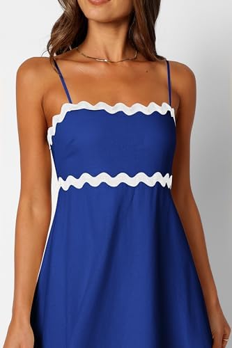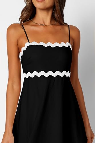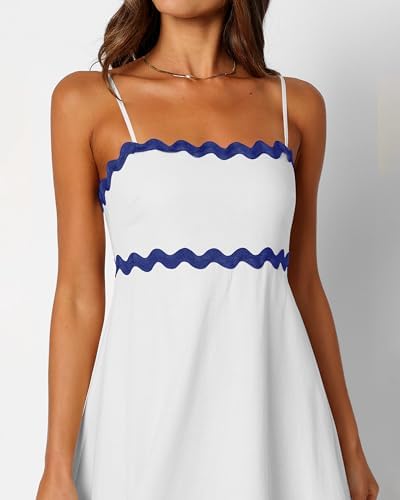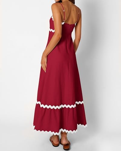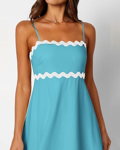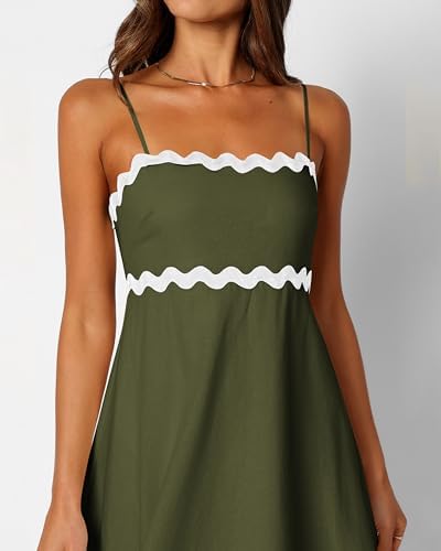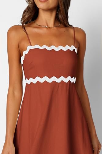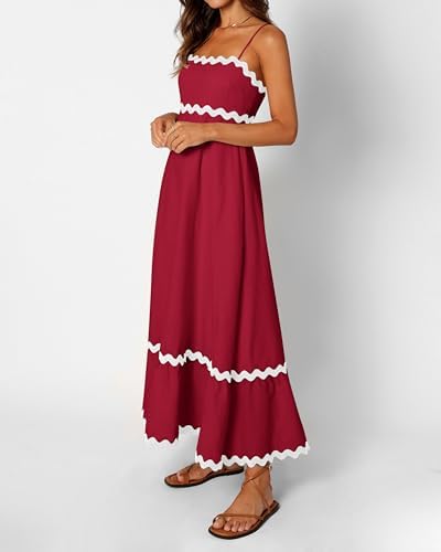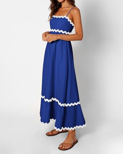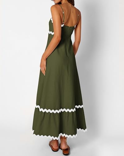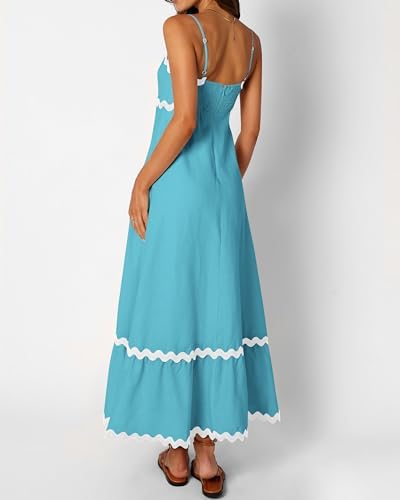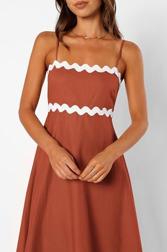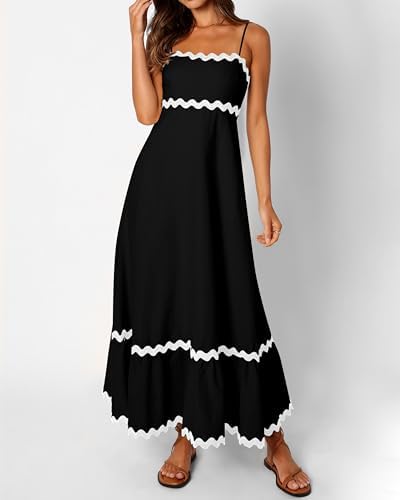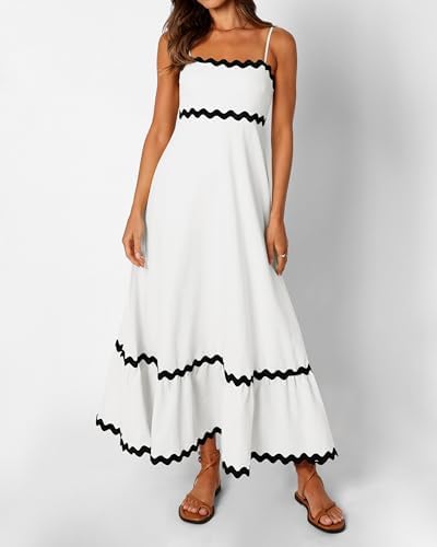 dowerme Women Summer Dresses 2024 Spaghetti Straps Sleeveless Smocked Rickrack Trim Boho Flowy Loose A-Line Midi Dress