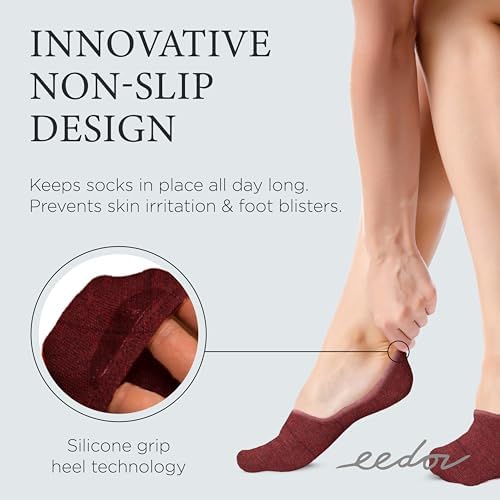 Eedor No Show Socks Womens - Non Slip Low Cut Ankle - Invisible Liner Socks for Casual & Formal Wear - Soft & Stretchable