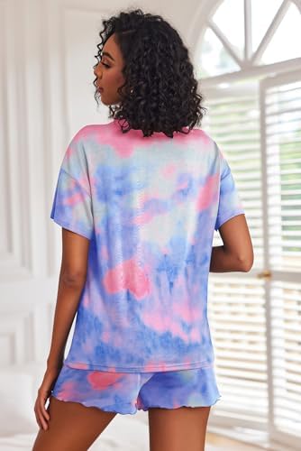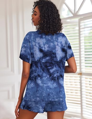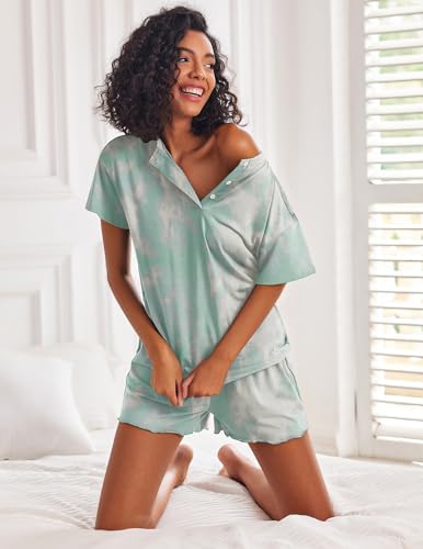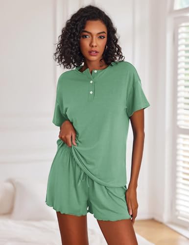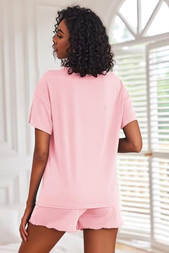 Ekouaer 2 Pack Womens Pajama Sets Short Sleeve Top with Shorts Soft Comfy Loungewear Sleepwear S-XXL