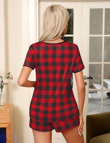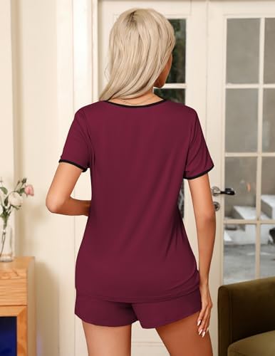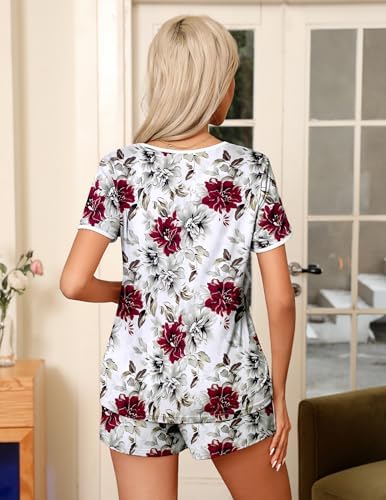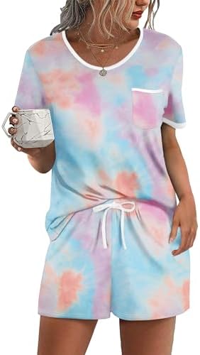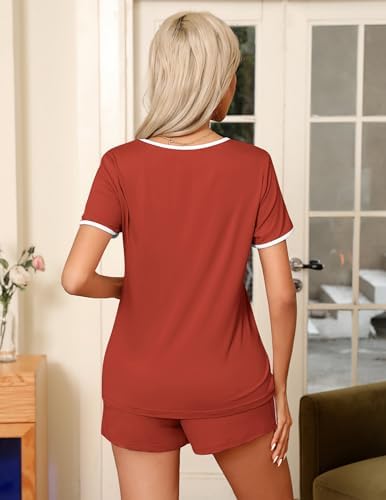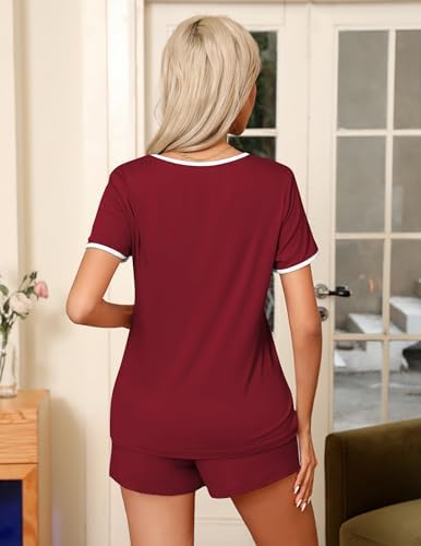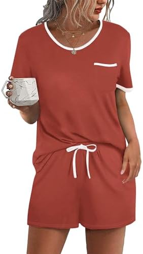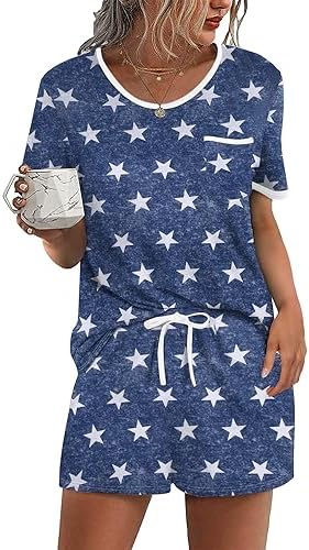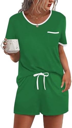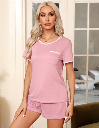 Ekouaer Pajama Set for Women 2 Piece Lounge Set Short Sleeve Tops and Shorts Soft Sleepwear, Chest Pocket