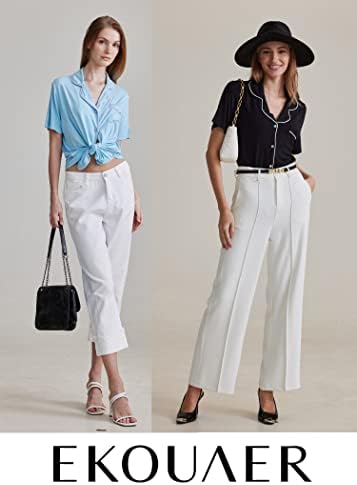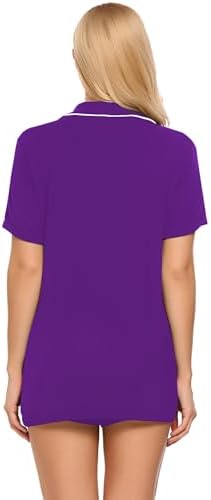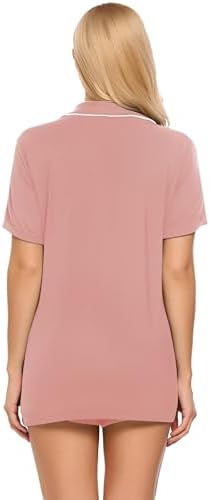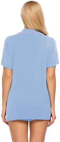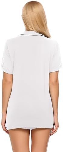 Ekouaer Pajamas Set for Women Short Sleeve Sleepwear Notch Collar Button Down Nightwear Soft Pjs Lounge Set
