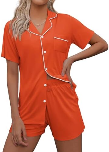 Ekouaer Short Sleeve Button Down Pajama Set for Women
