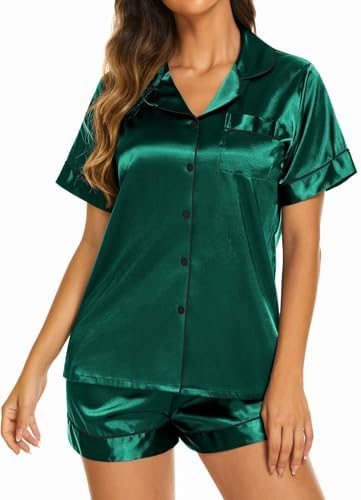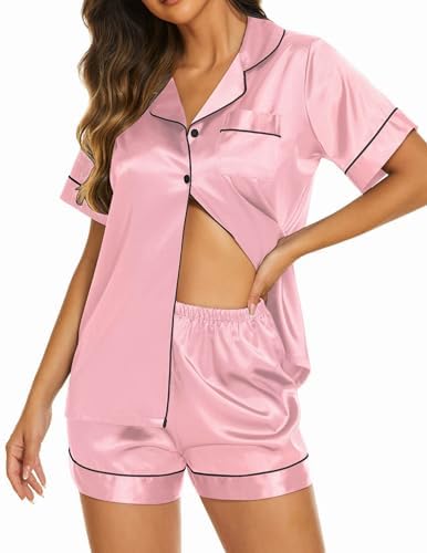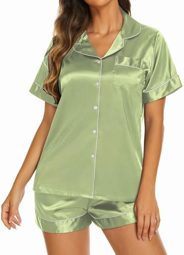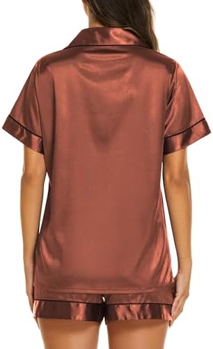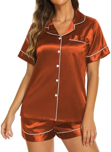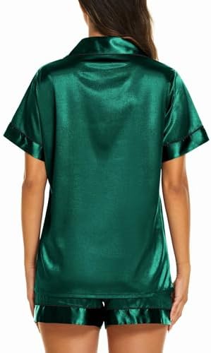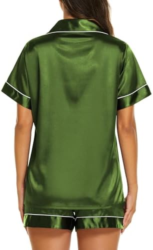 Ekouaer Womens Satin Silk Pajamas Set Short Sleeve Button Down Top and Shorts Sleepwear 2 Piece Pjs Set S-XXL
