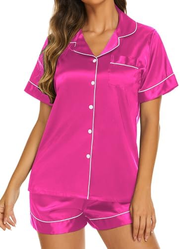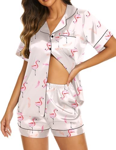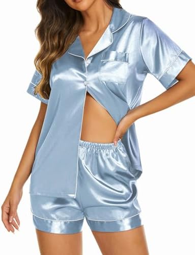 Ekouaer Womens Silk Satin Pajamas Set Short Sleeve Button Down Sleepwear