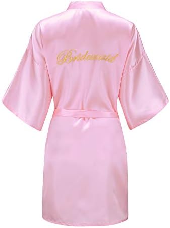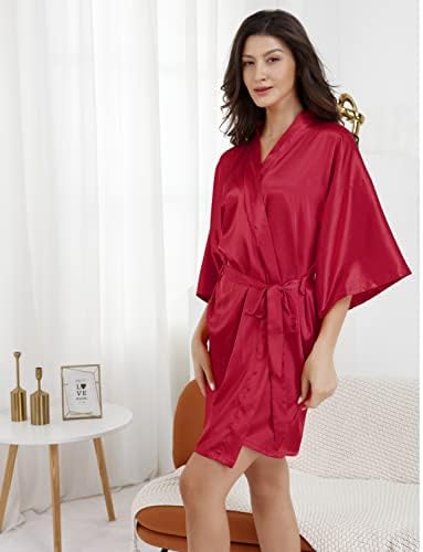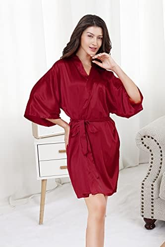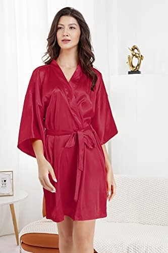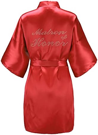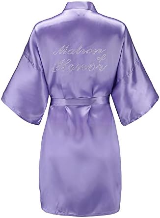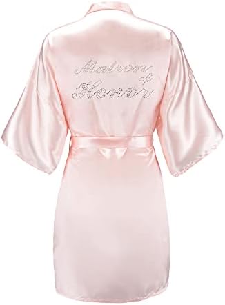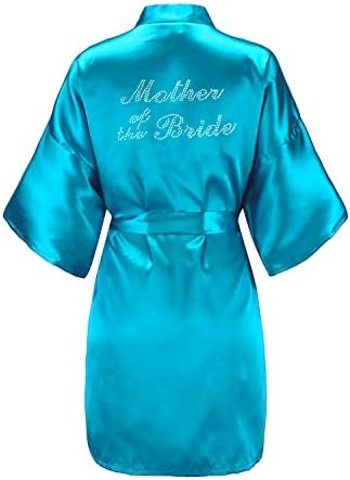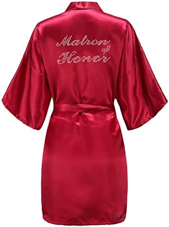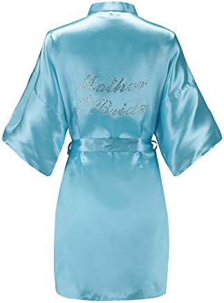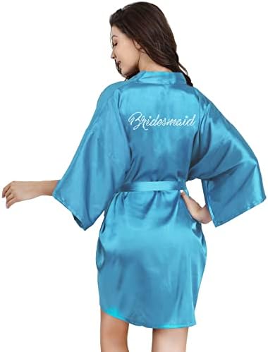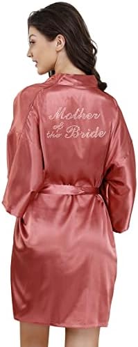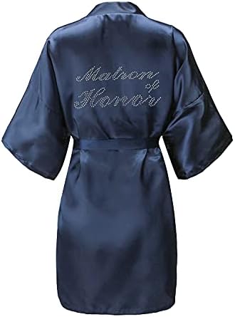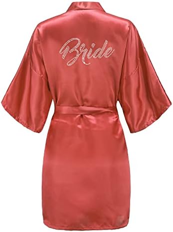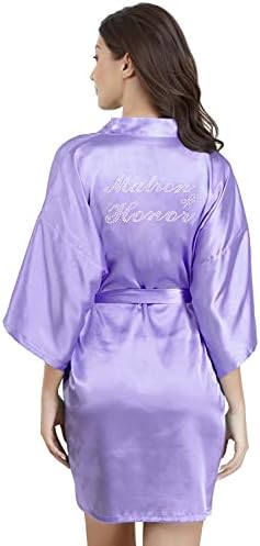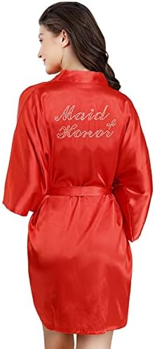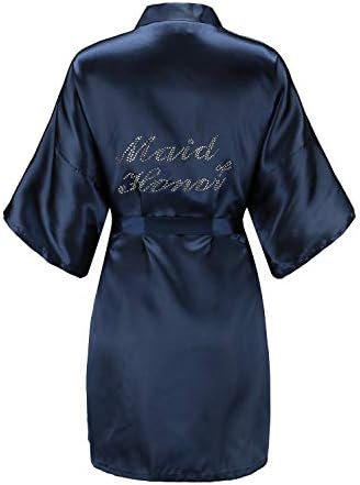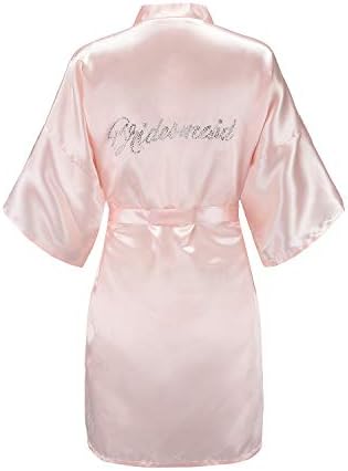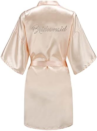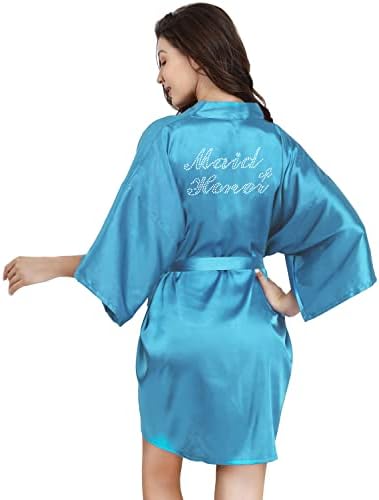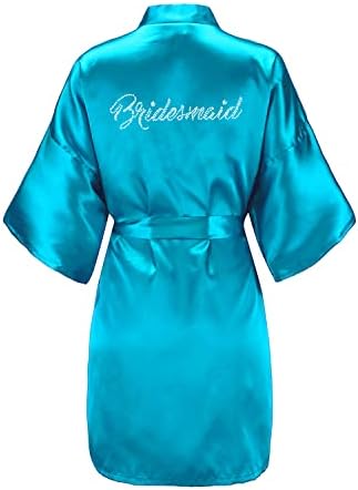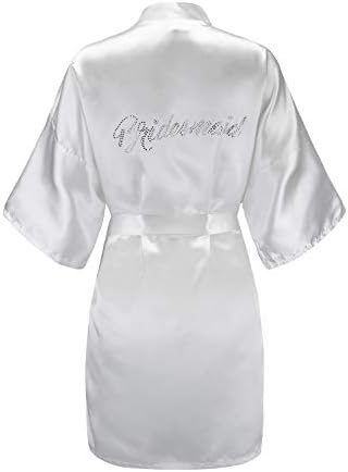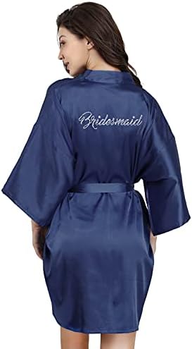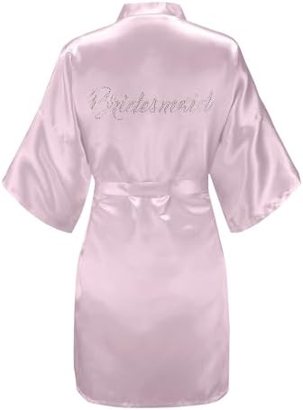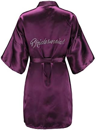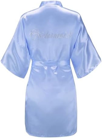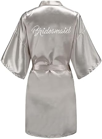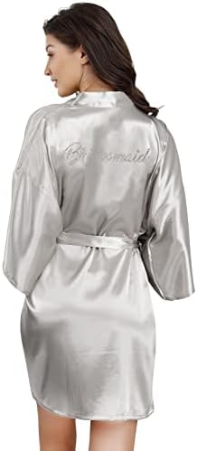 EPLAZA Women's One Size Silver Rhinestones Bride Bridesmaid Short Satin Robes for Wedding Party Getting Ready