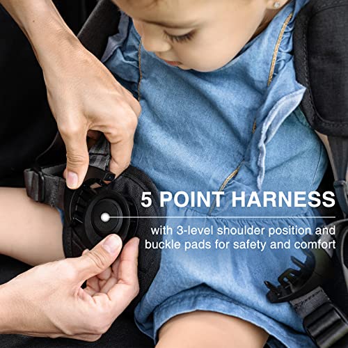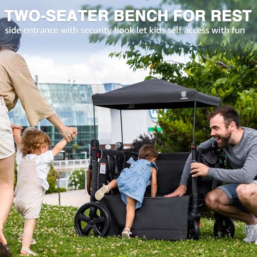 EVER ADVANCED Side-unzip Wagon Stroller for 2 Kids, Push Pull Stroller with Adjustable Handle, Easy Access Front Zipper Door, 5-Point Harness Removable UV-Protection Canopy Shock-Absorbing Wheels,Grey