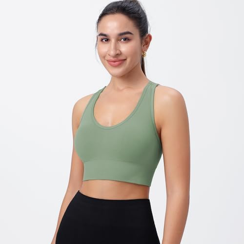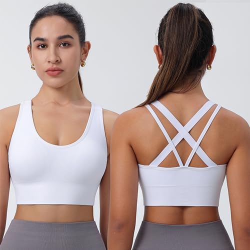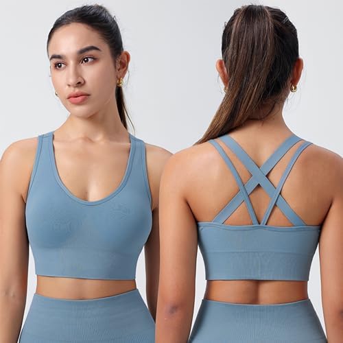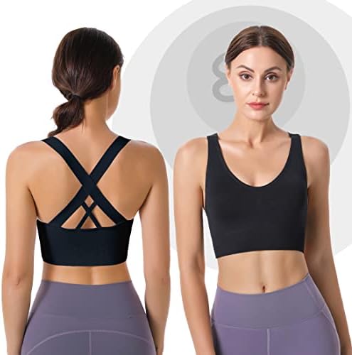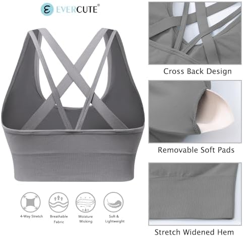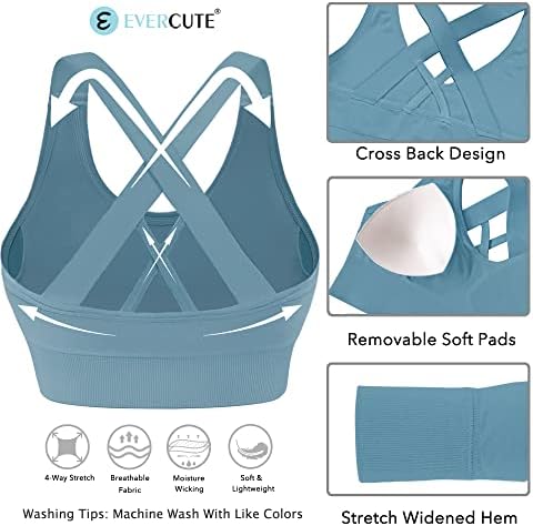 Evercute Sports Bra for Women Padded Medium Support Criss Cross Strappy Bras Seamless High Impact Yoga Exercise Athletic Bras