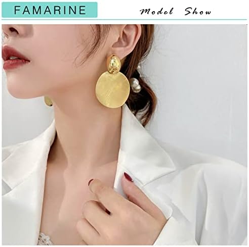 FAMARINE Big Disc Drop Earrings Gold Dangle Earrings Round Hammered Earrings Women
