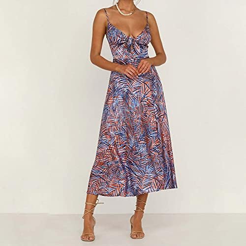 Fashionme Women Spaghetti Strap Midi Satin Dresses Tie Front Backless Split Hollow Dress
