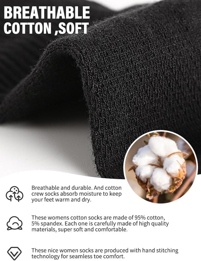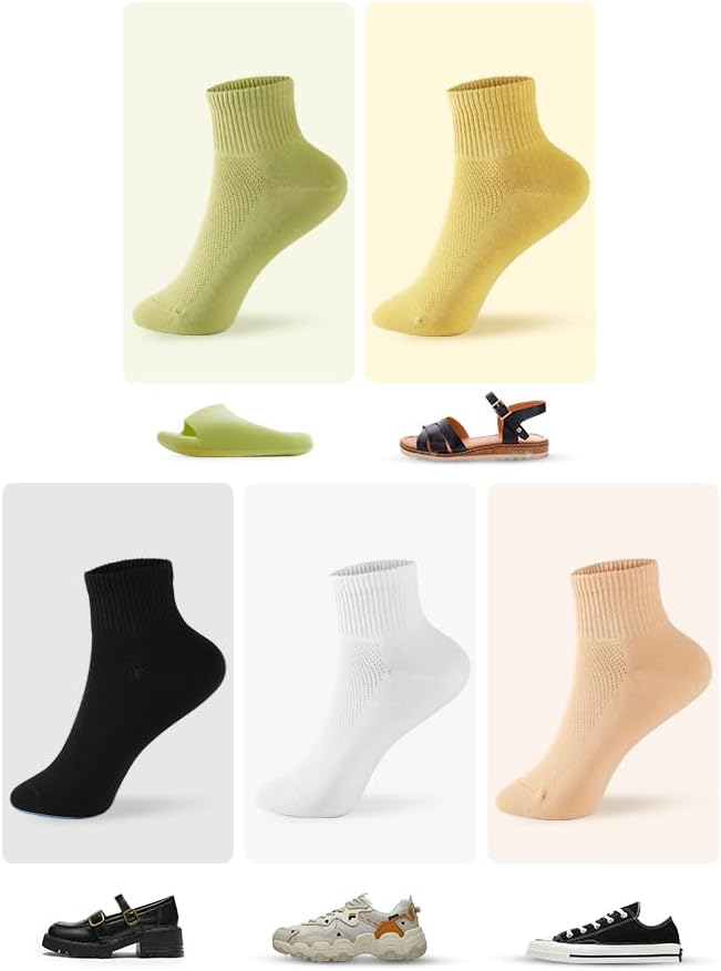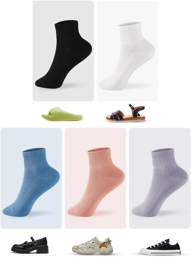 FGZ Women Thin Cotton Socks, Soft Cotton Bootie Socks Women Above Ankle Crew Socks 5-10 Pairs