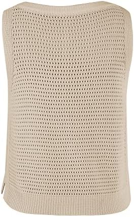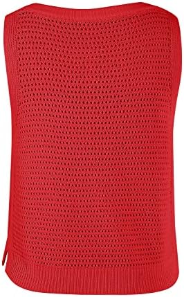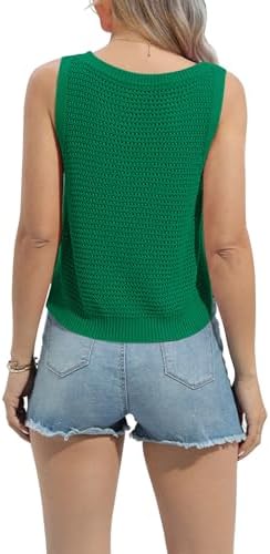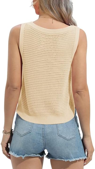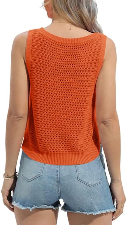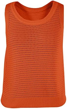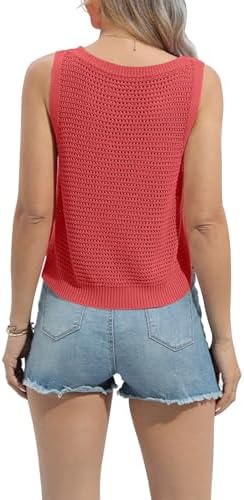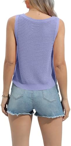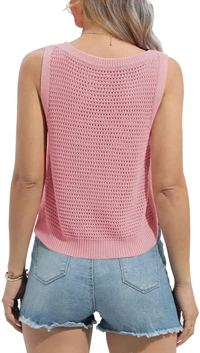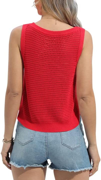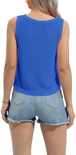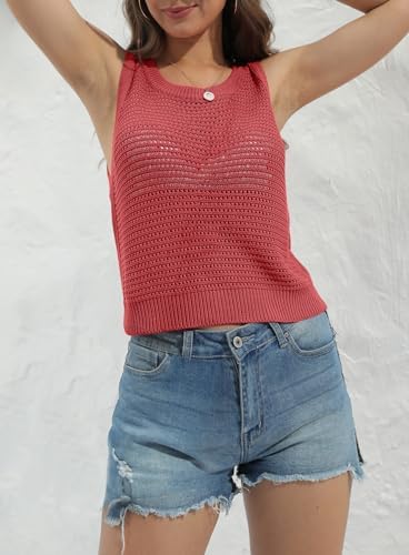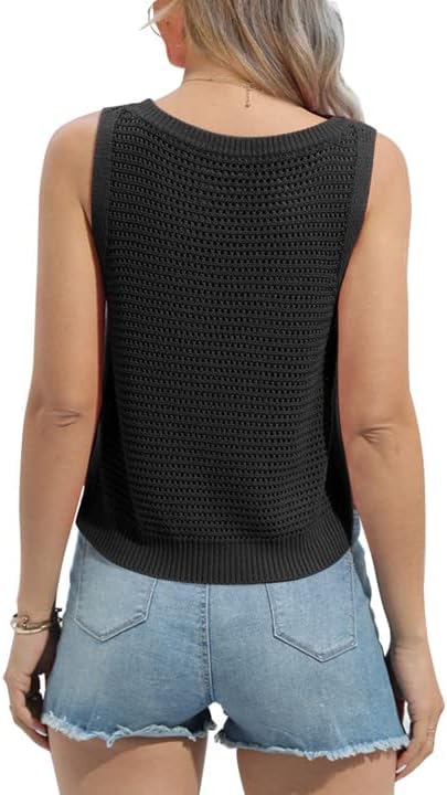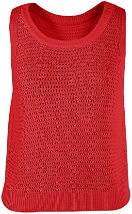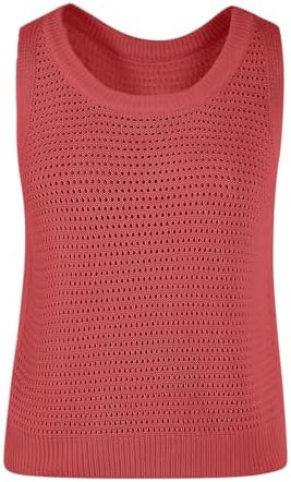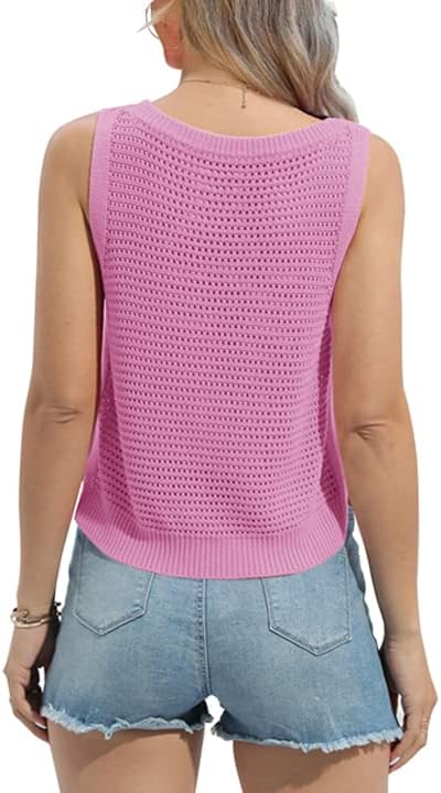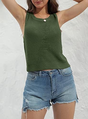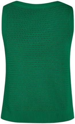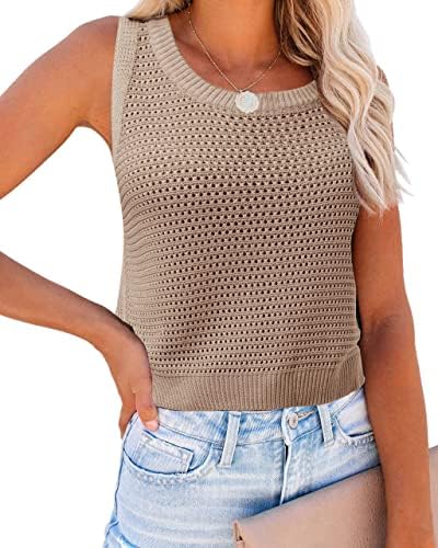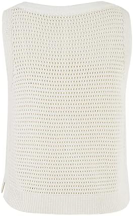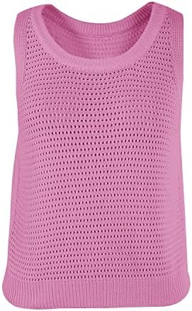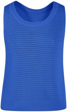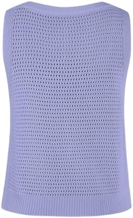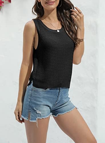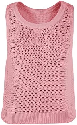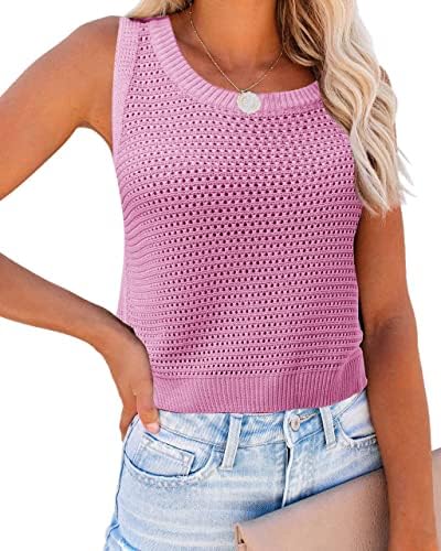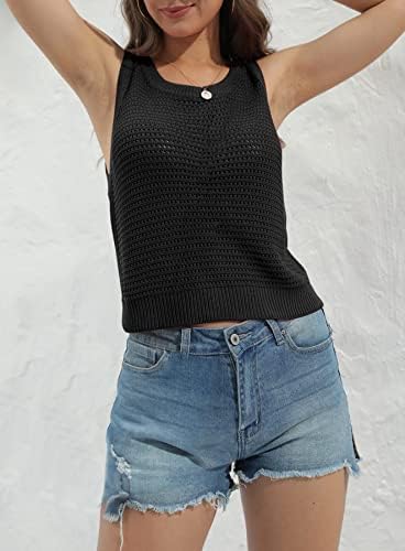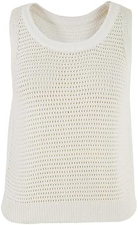 FISACE Womens Summer Knit Sweater Tank Tops Round Neck Crochet Hollow Out Sleeveless Casual Crop Shirt