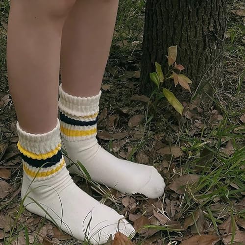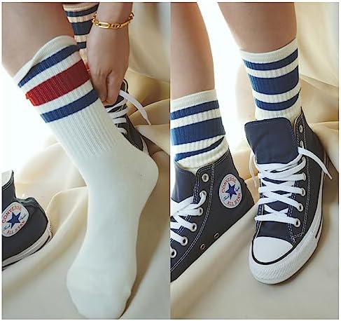 Fun Novelty Socks For Women Striped Retro Crew Socks Sporty Calf Socks Casual Cotton Socks Women